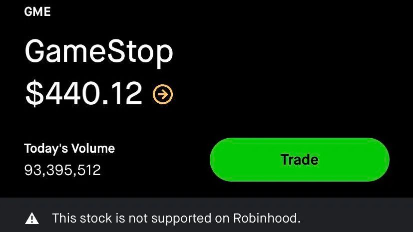 结果发现,他们最经常使用的买股平台,Robinhood上,已经无法购买GameStop的股票???