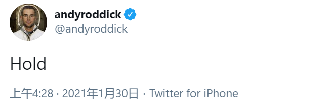 连前网球运动员安迪·罗迪克也神神秘秘发了一个“Hold”,撑住?持有?