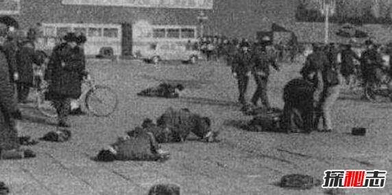 在绿地草丛中,警察有一人殉职,多人受伤。田以街心交通护栏为掩体,时而卧倒时而半蹲,准确射击,数十名武警竟一时无法靠前。恰在此时,一辆44路公共汽车驶来,如果司机冷静机智,以最大油门全速直冲,本可有惊无险。但哪个司机受过这种训练呢?被横飞的枪弹吓懵了的司机,竟然把车刹在了路中间,子弹成串地飞到车里,乘客纷纷倒在血泊之中。不少早晨上班的人是被从自行车上扫下来的,(死亡17人)。